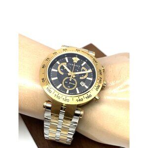 Versace Men's Watch VEJB00622 Swiss Quartz Chronograph Black Dial Two Tone Steel $1295 (AY7631Y)