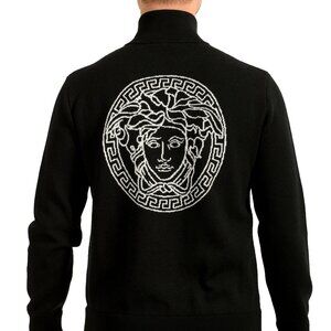 This is authentic Versace Men's Wool Knitted Logo Print Full Zip Cardigan Sweater