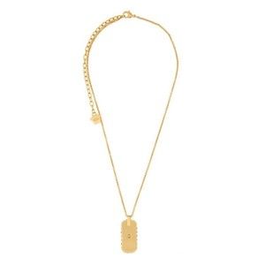 Versace introduces a luxurious necklace that embodies sophistication. The striking design includes an elongated pendant with intricate crystal detailing, hanging from a delicate chain. A polished finish elevates the minimalistic aesthetic, making it a refined choice for any distinguished wardrobe.