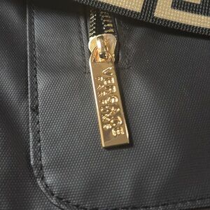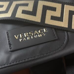 Experience luxury with the Versace Parfums backpack, featuring a striking black and gold color palette. The Greek key pattern on the straps adds a touch of elegance, while the structured design ensures it maintains its sophisticated shape. Perfect for those who appreciate a blend of style and functionality. NWOT