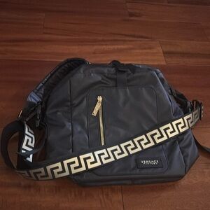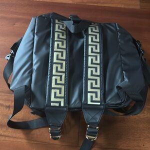 Versace Parfums Black and Gold Convertible Backpack with Greek Key Straps NWOT