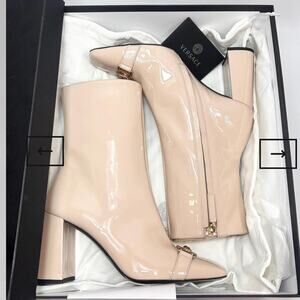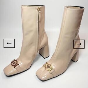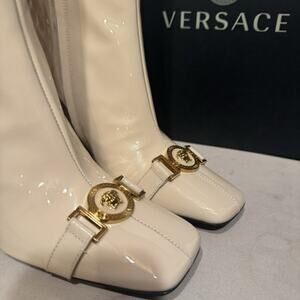 Versace Pattern Leather Cream Boots Size 37.5 New