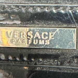 Elegant Versace bag with sleek black design. Features striking silver accents.