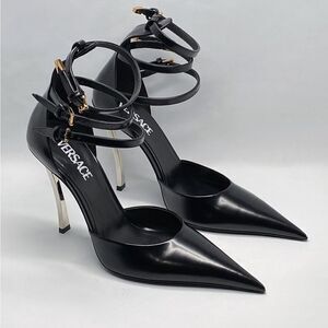 Versace Pin Point Leather Ankle Strap Pumps size 39.5