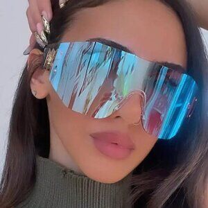 Versace Pink Mirrored Blue Shield Unisex Sunglasses