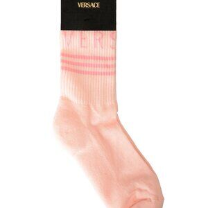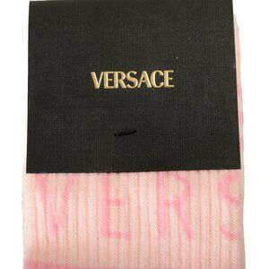 This is authentic Versace Dark Blue & White Logo Print Athletic Socks