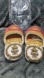 Elegant Versace slippers with Medusa motif. Pink and gold accents.