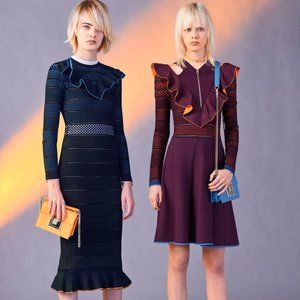 Versace Pre Fall 2017 Ruffle Knit Skater Dress Burgundy Orange Blue Sz 38 A77255