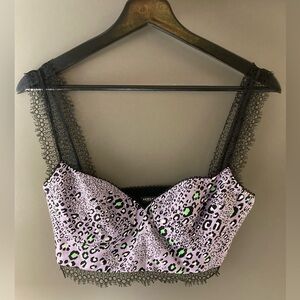 Versace Purple Lace Silk Cheetah Leopard Bralette Bra Top Size 38