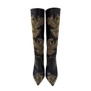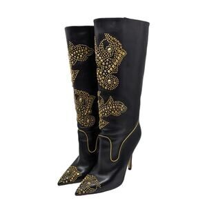 Versace Rare 2013 Western Cowboy Boots Black Leather Gold Studded Heels 40.5
