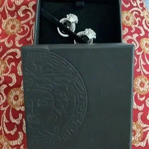 These are super chic rhinestone Versace earrings in new condition. Comes in original packaging. Very stylish and unique. Perfect for a gift. Certainly will not disappoint.