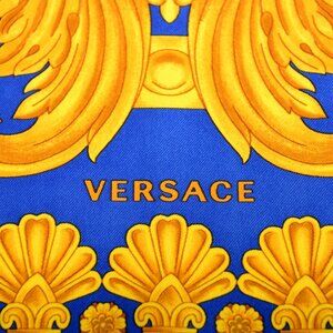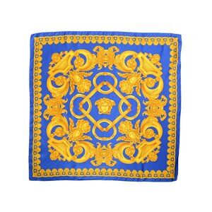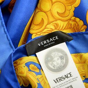 Versace Royal Blue & Gold Heritage Print 100% Silk Shawl Scarf