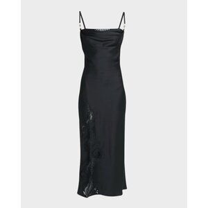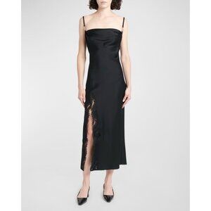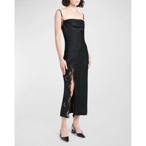 Versace Satin Lace-Embroidered black Midi Slip Dress Size 40/ US 4
