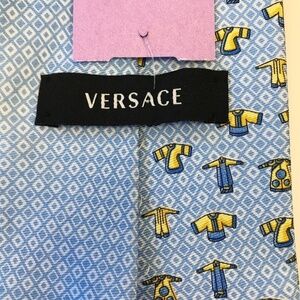 MENS: Versace made in Italy blue silk diamond & shirt patterned necktie, Retail $175
