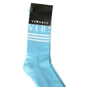 Versace Sky Blue & White Logo Print Athletic Socks sz M