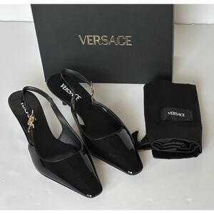Versace Sling Back Patent Leather Shoe Black 9.5 US (39.5) 1012579 IT NIB $875