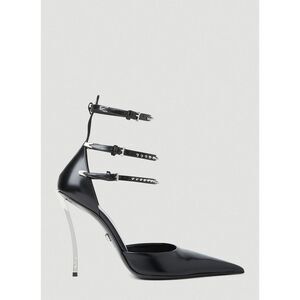 Synonymous with extravagant glamour and confidence, Versace continues to advance its vision of bold, body-conscious, haute couture-inspired style. The Spiked Pin Point High Heels are crafted from leather in smooth grain finish, featuring a pointed toe, side buckle-fastening ankle straps, spike studs at straps and stiletto heel.