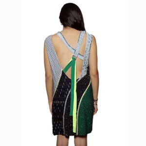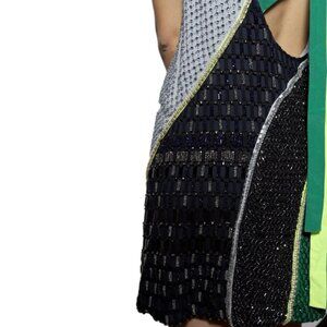 Versace Spring 2017 Swarovski Embellished Mini Dress Green Blue 100% Silk Sz 40