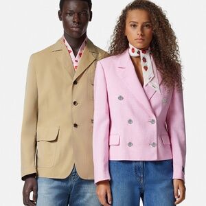 Versace Strawberry Garden Silk Skinny Twill Scarf Tie Logo Pink Red NWT