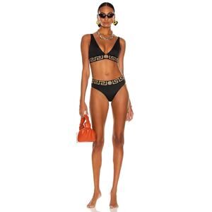 Featuring a mid-rise waist, contrast elastic waistband with logo detail, and a sleek stretch fit. Pull-on style. Smooth, quick-drying fabric for comfort and flexibility. Material: Self: 78% Polyamide, 22% Nylon. Contrast Fabric: 82% Polyester, 9% Elastane, 9% Polyamide. Made in Italy. Hand wash. Fits true to size