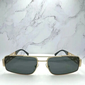 Versace Sunglasses Gold Rectangle Metal Logo Black Retro Italy 100% Authentic