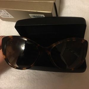 *Versace Sunglasses for sale! I year old glasses. Worn but taken care of very much. Loved them so much so they are in great condition . They are a cat eye frame with the Versace logo around it . Out of stock practically everywhere to try to get this exact color! Bought for 280 but willing to give a good sale on these babes! 100 percent authentic. Bought them from Sunglass Hutt. Made in ITALY!