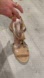 Elegant tan leather sandals with gold accents. Made in Italy. Good used condition. Comes with shoe bag and original box.