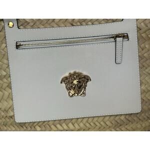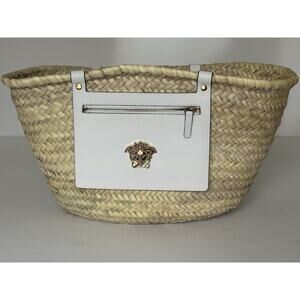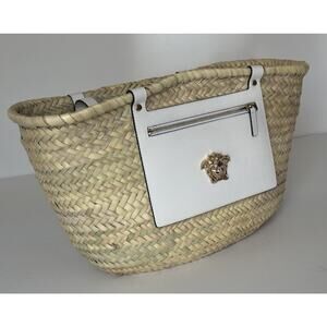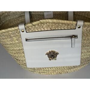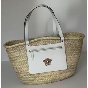 Versace Top Handle Small Tote Straw/Leather Natural/White Bag 1019454 NWT