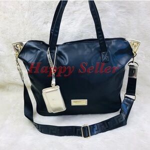 Super cute oversized tote bag. Includes adjustable crossbody straps with gold detail! Fully lined large interior pocket with 2 smaller individual pocket for keys /phone or accessories. includes a cute gold keychain pouch - for coins, cards, and more.