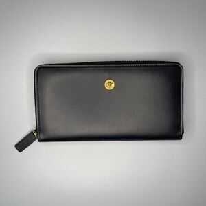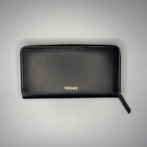 Versace Unisex Black Medusa Zip-Around Leather Long Wallet Gold Logo NEW