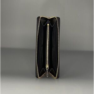 100% authentic Versace black leather wallet featuring the iconic Medusa gold emblem and a secure zip-around closure. Unisex design suitable for both men and women.