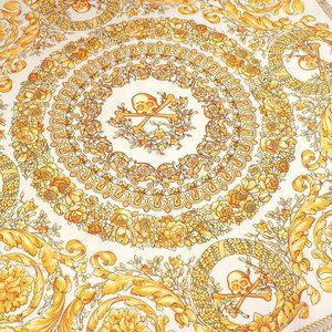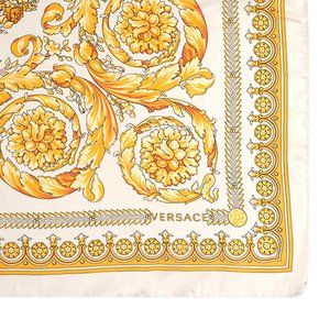 Versace Unisex Medusa Baroque Skull Print Silk Scarf White Gold