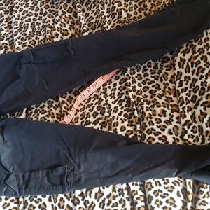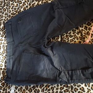 very cute black cargo like jeans. perfect fit. like new with out tags ruffled textured legs and large cargo pockets