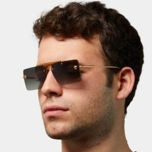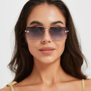 🔥 Versace VE2245 10028G Sunglasses Gold Gray Rectangle Rimless Metal Unisex