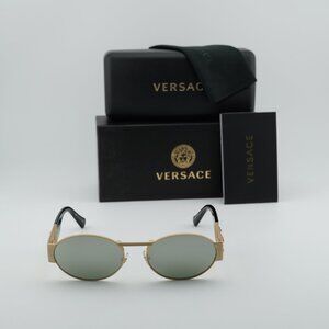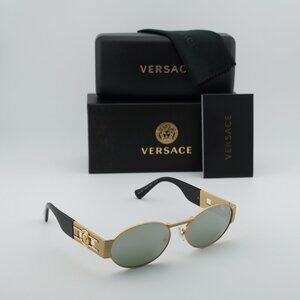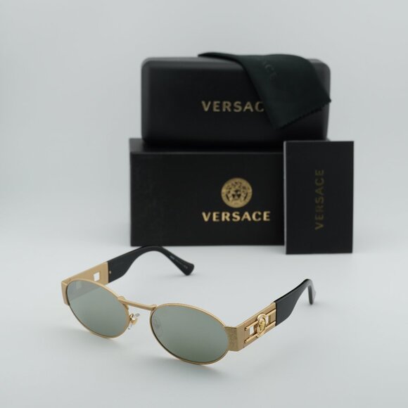 Versace VE2264 100230 Oval Sunglasses – Gold/Green Silver Mirror