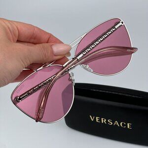 Versace VE2267 10007V BRAND NEW Sunglasses Silver Pink Mirror White Pilot Unisex