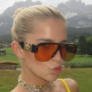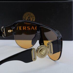 Versace VE4391 GB1/7 Shield Sunglasses - Black/Orange
