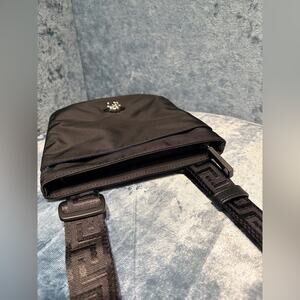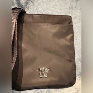 Carry style and functionality with ease with this sleek Versace Medusa Nylon Shoulder Bag. Crafted from durable nylon and finished in classic black, this unisex design features the iconic Medusa detailing and a streamlined silhouette—perfect for everyday wear or travel.