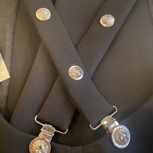 Authentic Versace Versus Black Blazer Vest Dress with X Open Back suspenders. Suspenders snap on with a clip. Silver lion head buttons. Size 44. NWT purchased from net a porter for over $2000. Item is final sale. Comes with hanger.