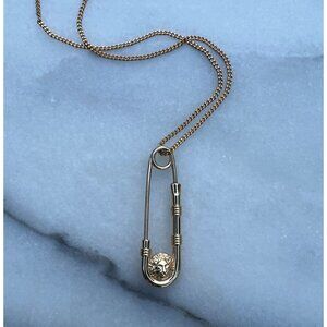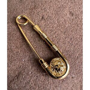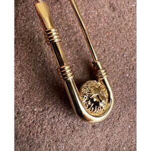 Versace Versus Safety Pin Lion Head Gold Brooch 43mm