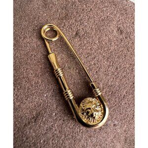 Versace Versus Safety Pin Lion Head Golden Brooch