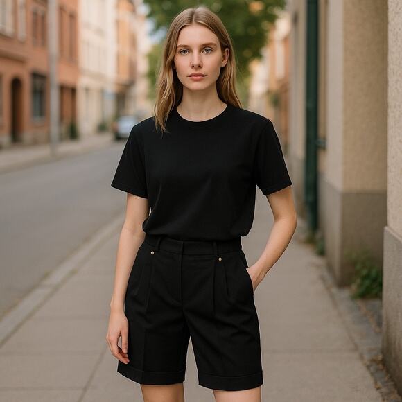 Versace Versus Shorts Tessuto Bermuda Womens 30" Black Pleated Wool Luxury Italy