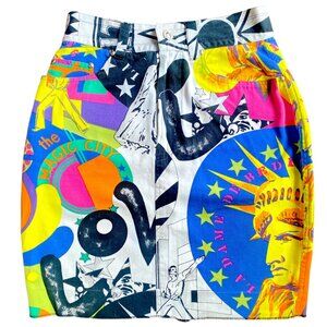 Versace Vintage 80's 90's NY Big City Statue Liberty RARE Versace Jean Skirt XS