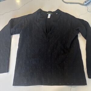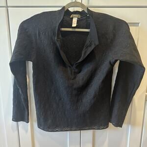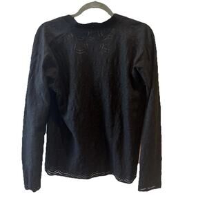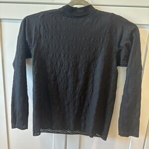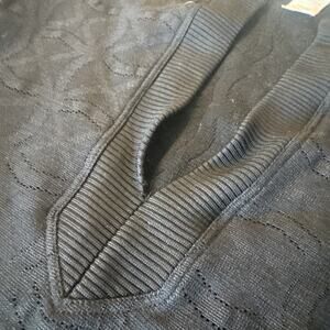 The Versace Vintage Black Long Sleeve Plunge V-neck Blouse is a timeless piece perfect for any woman's wardrobe. Made in Italy with a solid black color and classic fitted sleeves, this blouse features exquisite laser cut accents. The V-neckline adds a touch of elegance, making it suitable for all seasons. With a designer touch and classic style, this breathable blouse is a must-have for those who appreciate quality craftsmanship and timeless aesthetics.