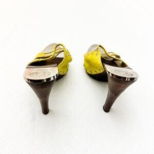 Versace Vintage Platform Mules Bright Yellow Wooden Heel Peep Toe Size 6