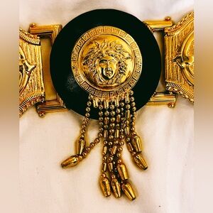 This belt is absolutely amazing and has held up so well for its age. They’re are 3 call outs. 1 the label has come off from wear over the years, 2 one of the tassels is missing and 3 a but if the gold had rubbed off from one of the Medusa medallions. All are shown in pictures above. Feel free to ask questions and send offers.