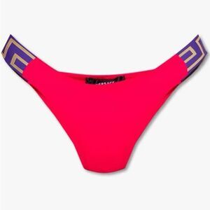 Versace's iconic Greca motif adorns the sides of these fuchsia-pink bikini bottoms for a distinctive and striking look.