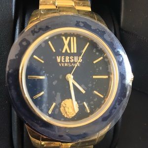 Authentic Gold & Navy Blue Versace Watch.