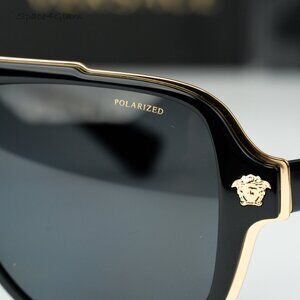 Versace Women Sunglasses Black Grey Polarized Pilot VE2199 100281 NEW AUTHENTIC
