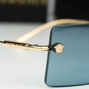 Versace VE2245 Medusa Glam 100280 sunglasses combine bold sophistication with iconic Italian craftsmanship. The rimless gold metal frame and vibrant blue lenses create a sleek, modern aesthetic thatโs both lightweight and eye-catching. Designed as a unisex statement piece, they provide full UV protection for luxurious comfort and everyday style.